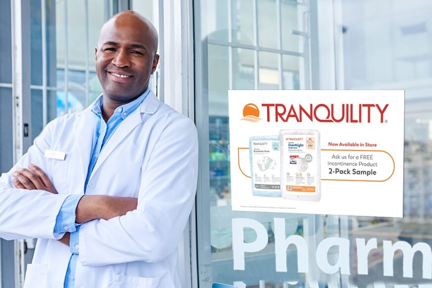 We stand behind our Tranquility® Incontinence Products, and we want to help you spread the word! You can request in-store materials, including professional-looking shelf signs and decals, to help identify our high-quality superabsorbent products to your customers – at no cost to you.